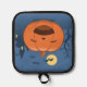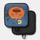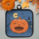 Adorable calabaza de Halloween riéndose. Un árbol muerto, una mansión espeluznante, algunos murciélagos y la luna son vistos en el fondo.
