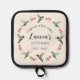 This pretty customizable pot holder is featuring a hand-painted watercolor ruby-throated hummingbirds and botanical branches on a cream-colored background. The font size and font style can be changed by clicking on "Edit design". All hummingbird images are taken from original watercolors by C. Dobbins.