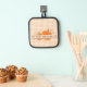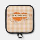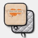 El diseño de este portaobjetos presenta dos calabazas y un lugar para añadir un nombre. El fondo es de color claro y naranja gingham.