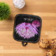 Manejar de forma segura bandejas de hornear, hojas de galletas y latas de muffin del horno con este soporte de maceta con guarnecido negro que muestra la imagen de una flor Astrantia rosa sobre un fondo negro y contrastante. También conocido como Masterwort y Hattie's Pincushion. ¡Un diseño impresionante y florido! Seleccione el estilo de respaldo de su soporte de olla.