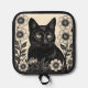 Porta Ollas Gato negro y flores