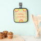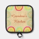 There's a special bond with family that happens around the kitchen table. Grandma's or Mama's kitchen is a special place. The secret ingredient to a happy home is homemade cooking, and this pot holder says it all. The cheerful rainbow graphic and elegant typography capture the essence of a warm, inviting home where food is made with love. This is a wonderful way to celebrate her culinary talents and the precious memories created around her table. Please note: This design is a flat-printed image and does not contain actual burlap, lace, or physical texture.