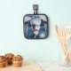 Colorful image of happy snowman in winter wonderland pot holder.