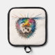 Ein freundlicher Igel in bunten Farben, eine kindliche Zeichnung eines Igels, mit Tusche und Kreide, gekleckst und geschmierte ist die Farben als Stil und Effekt des lustigen Bildes.