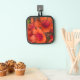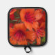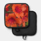 Manejar de forma segura bandejas de hornear, hojas de galletas y molduras de aleta del horno con este portaplatos con guarnecido negro que presenta una colorida imagen fotográfica de flores brillantes y naranjas de Rhododendron. ¡Un bonito diseño floral! Seleccione el estilo de respaldo de su soporte de olla.