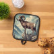 Una oveja de pino se alza orgullosamente sobre una cornisa rocosa que da a un paisaje montañoso sereno, con cielos azules y nubes dispersas que realzan la belleza natural y la esencia de la vida salvaje del lugar.