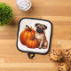 Porta Ollas Pug Adorable sentado al lado de calabazas y hojas
