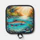 Porta Ollas Trucha en río transparente bajo un bosque exuberan