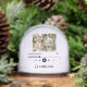 Este sencillo y elegante Globe de nieve morada y negra muestra su foto personal en la parte delantera, con un simple pero elegante texto en serif , con un reproductor de música en la parte inferior de la portada . Añade la fecha en que ambos se conocieron y luego la fecha en que te casaste o te comprometiste. En la parte trasera hay un texto dorado que dice "Feliz y casado" escrito en caligrafía.