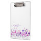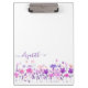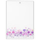 Flores acuáticas abstractas en tonos violeta, azul y rosa con acentos melocotón. Se coloca sobre un fondo blanco. Flores en tonos violeta, azul y rosa con acentos de melocotón. Se coloca sobre un fondo blanco. Personalice su nombre o mensaje en una fuente de escritura morada oscura.