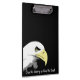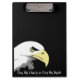 Portapapeles mostrado en un fondo negro con un gráfico de un águila calva estadounidense impreso en el frente y en la parte posterior junto con la igualmente audaz declaración de "Dame libertad o dame muerte". Personalizar este artículo o simplemente compra tal cual.