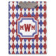 Argyle va 8 bits y Americana con esta combinación de colores rojo, blanco y azul. Un punto de contraste de color marrón claro le da un toque retro. Personalizar el monograma con las iniciales adecuadas para un toque personalizado.