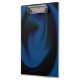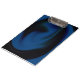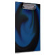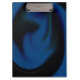 Un portapapeles cubierto de una mancha colorida, tanto en la parte delantera como en la trasera, de azul y negro.
