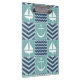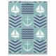 Un tejido inspirado en las plazas turquesas tormentosas, adornado con un velero y un ancla blancos, y cuadrados azul marino profundos, acentuados por cantos y olas azul claro, se acentúa con puntas blancas para crear un ambiente náutico clásico.