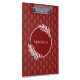 Aprecia notas y recordatorios en una superficie segura con un Portapapeles personalizado de Damask elegante rojo. El diseño del portapapeles presenta un elegante fondo de damasco y un espacio para añadir su nombre adornado con delicado follaje. Artículos de regalo adicionales disponibles con este diseño así como una variedad de colores.