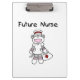 Un lindo portapapeles de enfermera tiene una enfermera de mono calcetín y el texto lee: Enfermera Futura, ¡genial para los estudiantes de enfermería!