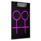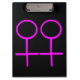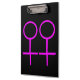 Este impresionante portapapeles está diseñado para lesbianas. Cuenta con dos símbolos femeninos rosados uno al lado del otro. El fondo es negro