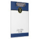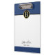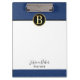 Portapapeles moderno de letra B en azul y dorado con letra inicial y nombre personalizado.
