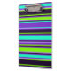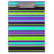 Añada un toque de color a su área de trabajo con este portapapeles vibrante que incluye rayas violetas, violeta, acuática y chartreuse. Perfecto para profesores, estudiantes o cualquier persona que ame el estilo lúdico pero organizado.