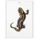 Salamandra de fuego (Salamandra salamandra) recubierta de pequeños granos de arena, aislada en un fondo blanco