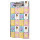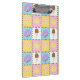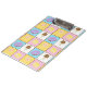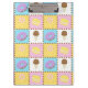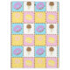 Satisfacer tu diente dulce con este colorido patrón de delicias como un helado de chocolate, un donut de chocolate con espuma violeta, un macarón amarillo limón y una langosta rosada y blanca, separada por patatas de chocolate y rodeada de rociadores de arcoiris sobre cuatro plazas de colores vivos.
