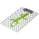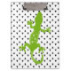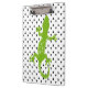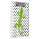 Un sofisticado y moda portapapeles de diseño de triángulo blanco y negro que se vuelve muy divertido una vez que añades un lagarto verde.