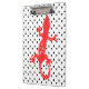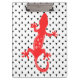 Un sofisticado y moda portapapeles de diseño de triángulo blanco y negro que se vuelve muy divertido una vez que añades un lagarto rojo.