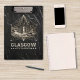 Un portapapeles vintage, su superficie acrílica transparente que exhibe las majestuosas Cámaras de la Ciudad, susurrando historias de siglos pasados, un vínculo tangible con la historia que espera ser explorado.