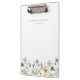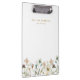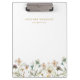 Portapapeles Floral Acuarela. Chic y elegante, este hermoso portapapeles floral presenta impresionantes flores silvestres vintage delicadas pintadas a mano con acuarela rosa desvanecido, azul polvoriento y amarillo brillante con botánicos de salvia verde. El texto es dorado amarillento, pero se puede cambiar fácilmente.
