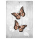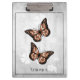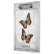 Apretar notas y recordatorios en una superficie segura con un Portapapeles personalizado de Floral de mariposa de cobre. El diseño del portapapeles presenta un par de mariposas vibrantes que descansan sobre una vina floral blanca contra un fondo gris claro. Artículos de regalo adicionales disponibles con este diseño así como una variedad de colores.