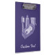 Diente muerto en ataúd con cepillo de dientes, pasta dental y hilo dental. Texto personalizado en ambos lados.