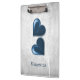 Agarra notas y recordatorios en una superficie segura con un Portapapeles personalizado de Blue Hearts. El diseño del portapapeles presenta un par de corazones, una suave parrilla blanca sobre un fondo gris claro con un área que personalizar con tu nombre. Artículos de regalo adicionales disponibles con este diseño así como una variedad de colores.