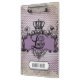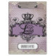 El bonito diseño vintage presenta un portapapeles con un fondo de rayas de chevron violeta con un cartel de diseño regal negro con una corona y remolinos decorativos con texto que lee en vivo Simplemente reír a menudo amor profundo. También tiene un banner de estilo vintage en blanco y negro que puedes personalizar fácilmente con tu nombre.