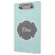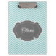 El Verde azulado Portapapeles Personalizado de Chevron presenta un diseño con un fondo de chevron verde azulado y una etiqueta gris ornamentada para personalizar con su nombre y monograma. También hay artículos adicionales disponibles con este diseño. Póngase en contacto conmigo directamente para obtener ayuda sobre la personalización.