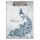 Agarra notas y recordatorios en una superficie segura con un Portapapeles personalizado Blue Peacock. El portapapeles es una pieza de oficina que impresiona visualmente, con un vibrante pavo real azul metálico con plumas irrisorias brillantes con tonos de azotazo y cobalto, creando un audaz y lujoso punto focal. El diseño, con un fondo gris, está decorado con delicados botánicos de hojas blancas, intrincadamente tejidos alrededor del pavo real. Estas hojas añaden un toque de elegancia y suavidad inspirada en la naturaleza, suavizando la rudeza del fondo gris y complementando la presencia real del pavo real. El guión elegante le permite agregar su nombre o el nombre del destinatario para un regalo personal.