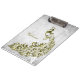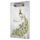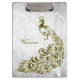 Agarra notas y recordatorios en una superficie segura con un Portapapeles personalizado Gold Peacock. El diseño del portapapeles presenta un pavo real dorado vibrante, un suave pardo de hojas blancas contra un fondo gris claro con un área que personalizar con tu nombre. Artículos de regalo adicionales disponibles con este diseño así como una variedad de colores.