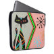 Diseño moderno de mediados de siglo para tu funda portátil favorito. Gato negro con rayas junto con el divertido estallido atómico. Estilo".