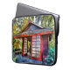 Esta manga neoprene para ordenador portátil ofrece unas vistas pintorescas a una tranquila casa de té japonesa. La luz ilumina las ventanas de esta casa de té japonesa en el Jardín Botánico de Bellevue, en el estado de Washington. Esta imagen se basa en una foto original con efectos de acuarela. Las reuniones de té a menudo incluyen la preparación y presentación ceremoniales de matcha (抹 茶), té verde en polvo, cuyo arte se llama (o)temae [お]手 前; [お]点. Un chakai es una hospitalidad que incluye refrigerios, té ligero y a veces una comida ligera. Un chaji es una reunión formal, que por lo general incluye un plato de kaiseki y repostería, té grueso y té fino.