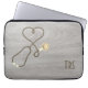 Bonito grano de madera rústico gris con un fondo acentuado por un estetoscopio en forma de corazón. Enfermeras, médicas y profesionales de la industria médica apreciarán esta manga de computadora. Monograma con iniciales o título.