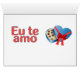 "Eu te amo" - "Te amo" en portugués. Dé esta preciosa carta al El día de San Valentín o cuando quieras expresar tu amor. Pequeños corazones en las cuerdas yacen en un escenario de hormigón en el sol matutino, arrojando largas sombras.