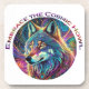 'Abraza el aullido cósmico' lobo psicodélico. Colorida y llamativa, esta montaña tiene un lobo de colores cósmicos que gira alrededor. Un recordatorio trippy y espiritual para permanecer fiel a los valores de la naturaleza. Contiene contenido generativo.