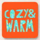 Este gráfico brillante muestra la frase "Acogedor y cálido" en azul brillante con copos de nieve. | Blanckslate | 141048D