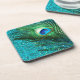 Increíble diseño de plumas de pavo real. El impresionante fondo azul acuático tiene una impresionante y única pluma de pavo real.