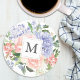Posavasos Acuarela Floral Azul Rosa de Primavera Monogramada