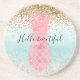 Posavasos Acuarela rosa Tropical Piña Aqua Ombre oro