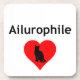 Astras con la palabra griega "amante del gato", "ailurophile" y una silueta de gato negro dentro de un corazón rojo.