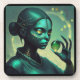 Posavasos Alien Lady sostiene un objeto de vidrio transparen