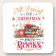A festive and cheerful Christmas design showcases a stack of red and green books topped with poinsettias. Beside the books is a steaming cup of tea, surrounded by hearts and stars. The vibrant text reads, "All I want for Christmas is more books." This delightful design is available on a variety of products, making it a perfect gift for book lovers.