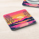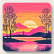 Posavasos Amanecer dorado sobre arte de lago rosado