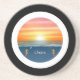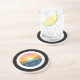 Puente de sol oceánico y caballito de mar con marco de círculo blanco y negro.